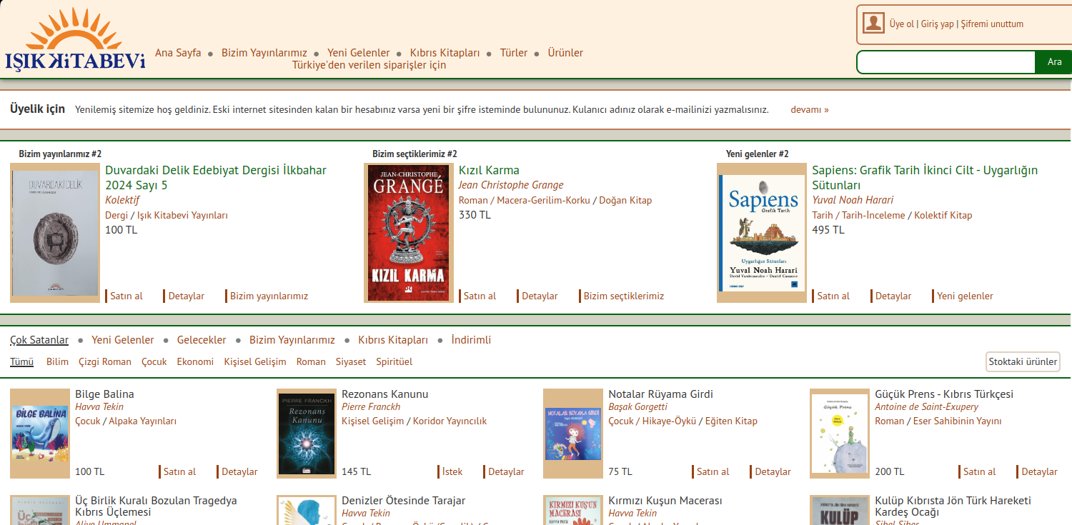 Işık Kitabevi için hazırlanan bu sistemde online satış, stok yönetimi, satın alma karar desteği ve ön muhasebe gibi modüller yer alıyor. Bir çok farklı gönderim seçeneği içeren satış sisteminde Garanti Bankası Sanal POS kullanılmış olup güvenlik için 3D secure kullanılmaktadır.